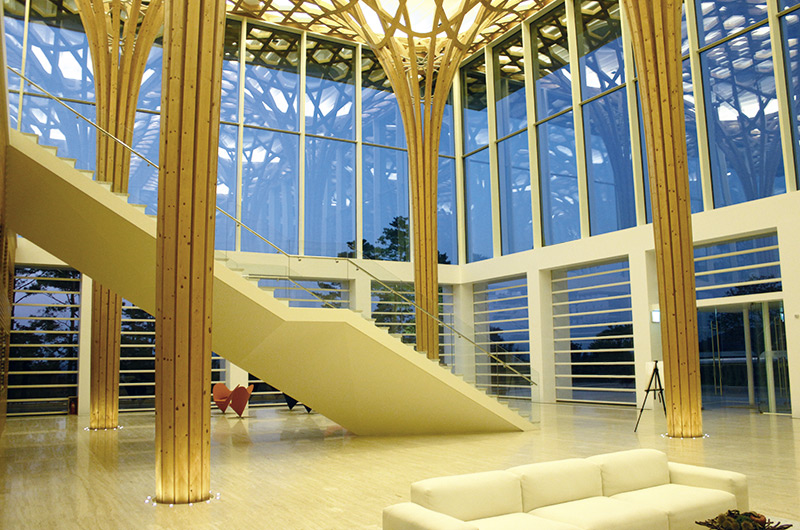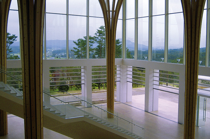 Projekte wie dieses in Südkorea, bei dem Stararchitekt Shigeru Ban einen Golfclub gestaltete, verlangen nach Präzision und Know-how. Shigeru Bans Spezialität ist es, mit viel Holz und Glas, nachhaltig und energieeffizient Innen- und Außenbereiche zu verbinden.